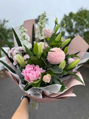 Four sizes choose from - Bouquet of lovely Summer tones. Seasonal mixed flowers - Florist will choice best blooms to suit the style of Bouquet - Soft pretty summery shades