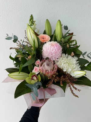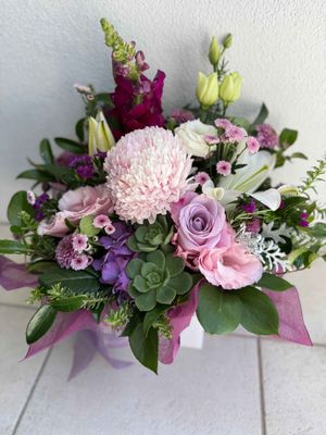 A larger size in the Pretty Boxed Arrangement. Suitable of easy care and ability to move easily. Place and enjoy